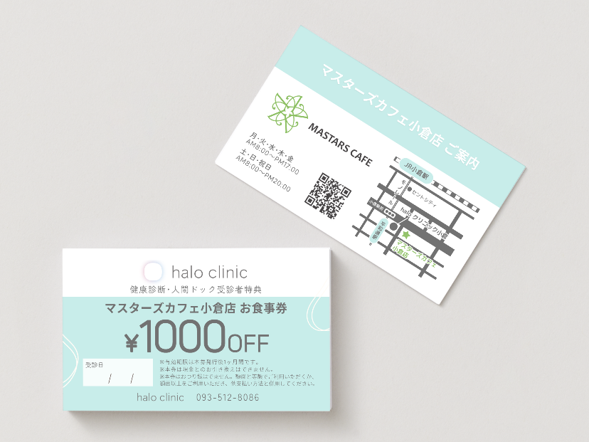 haloクリニック小倉では、人間ドックをご受診いただいた方に、受診後も快適にお過ごしいただけるよう、ランチクーポンをお渡ししています。